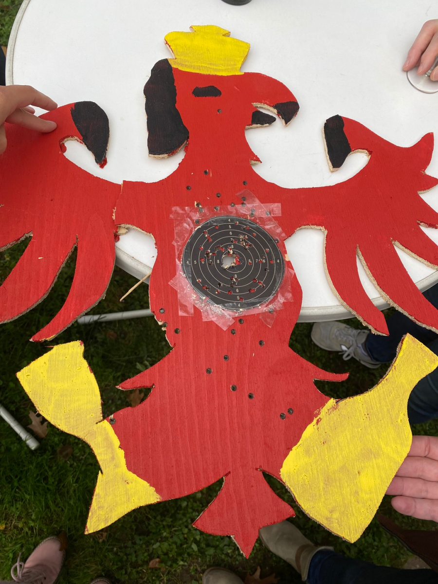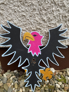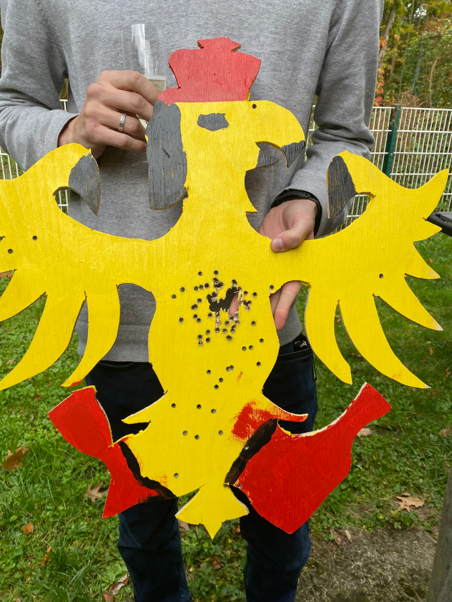 Wie im letzten Jahr wurden Holzadler von den ehemaligen Hoheiten geschnitzt und bemalt, die zu Fall gebracht werden mussten.